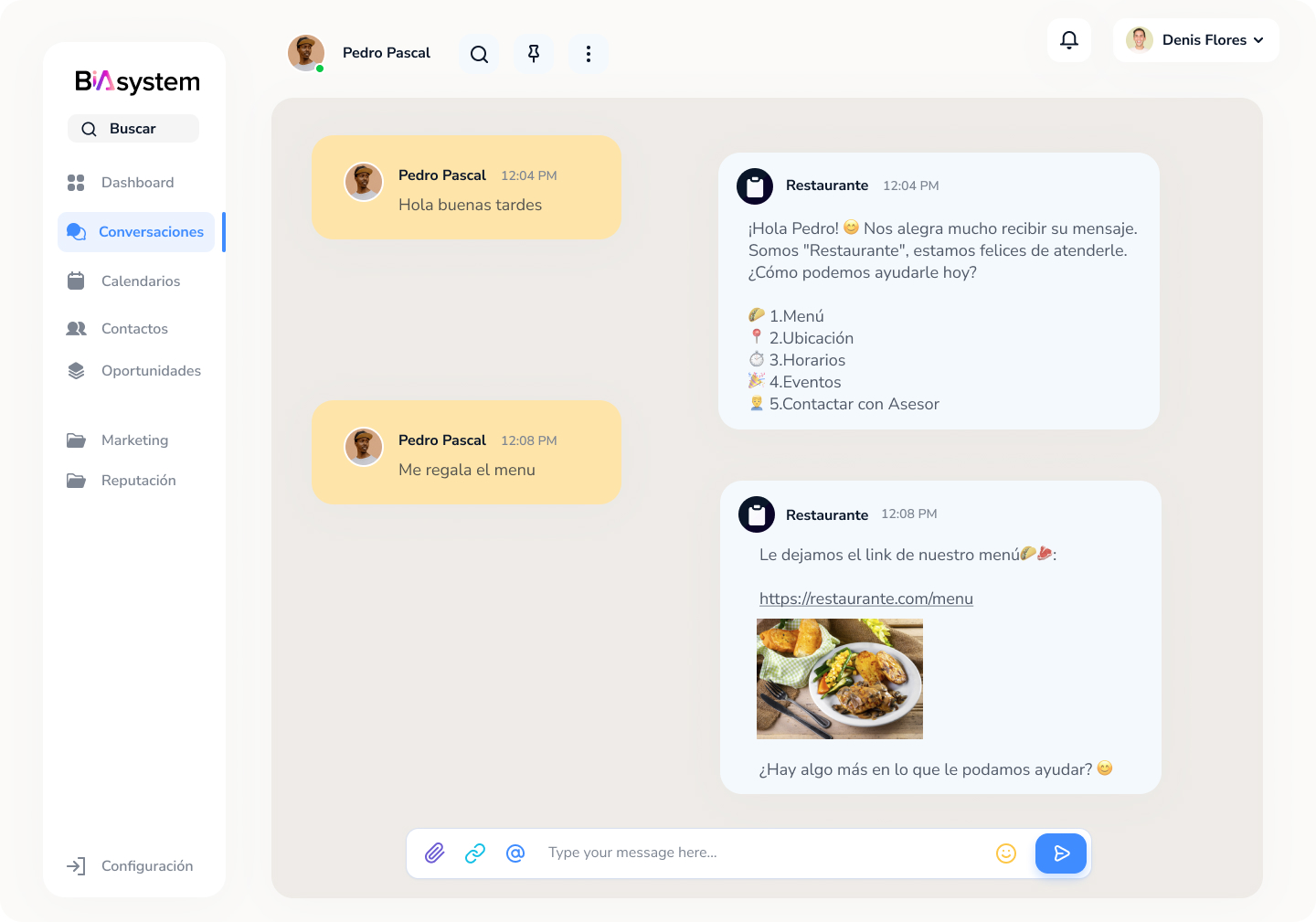 Menú automatizado con Chatbot