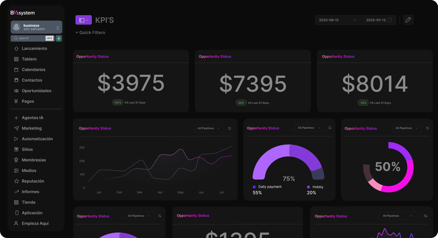 Todo tu marketing en un solo lugar: embudos de ventas ilimitados, correo electrónico, Agentes IA, CRM, calendarios de eventos y servicios, landing pages, automatizaciones, planificador de contenidos, entre muchas cosas más.